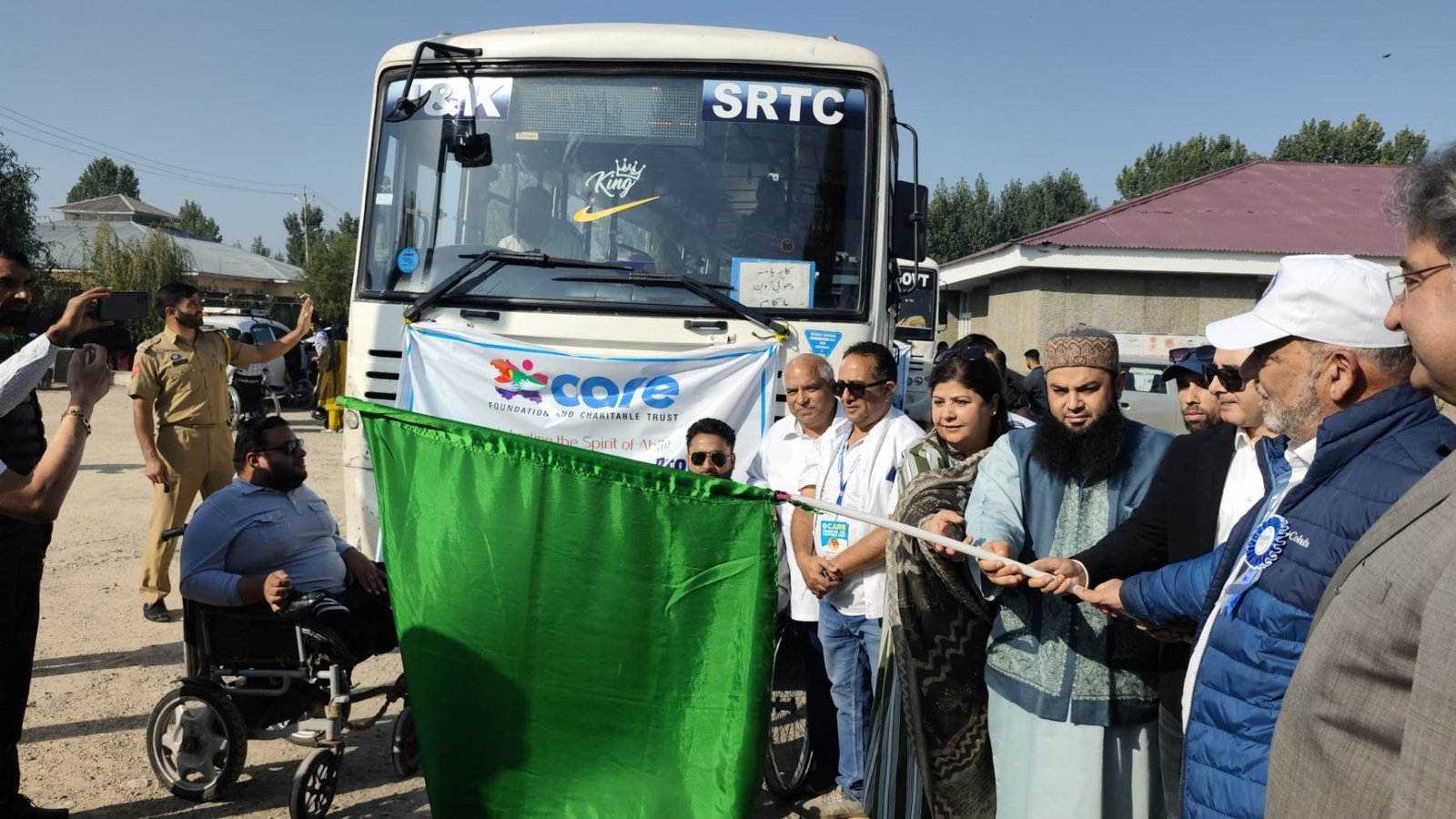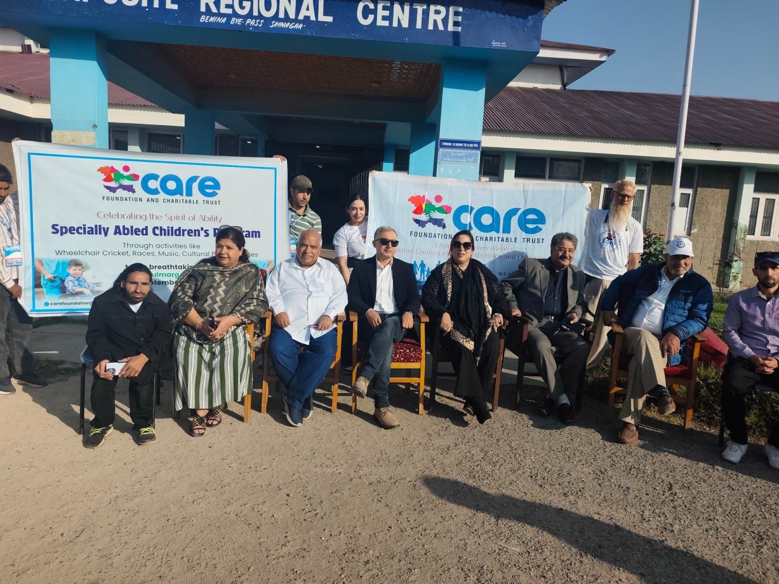 The tour was flagged off from CRC Bemina, Srinagar, where a brief flagging-off ceremony was held in the presence of several dignitaries. Among those who graced the occasion were Dr. Mehjabeen Nabi, Chairperson Care Foundation & Charitable Trust, Mr. Farooq Renzoo Shah, Moulana Miyan Adil Noorani, Tahir Ashraf Bhatti, Mtr. Nighat Aman, Mushtaq Ali Ahmad, Engineer Bupinder Singh, Sheikh Firdous ali Chairman Rehmatan lil alameen foundation, Dr. Mir Ghulam Hassan,Shamim Ahamed Kuchay, Noor Muhammad Wani, Noor ul Amin, Khurshid Qureshi, Hussain Zalpoori, Afaq Ahmad,Aiza Fazili and many others. Their presence not only encouraged the children but also reflected the collective commitment of society towards inclusion and care for specially-abled individuals.